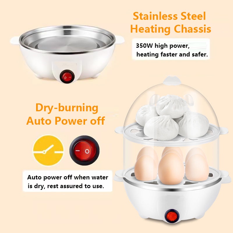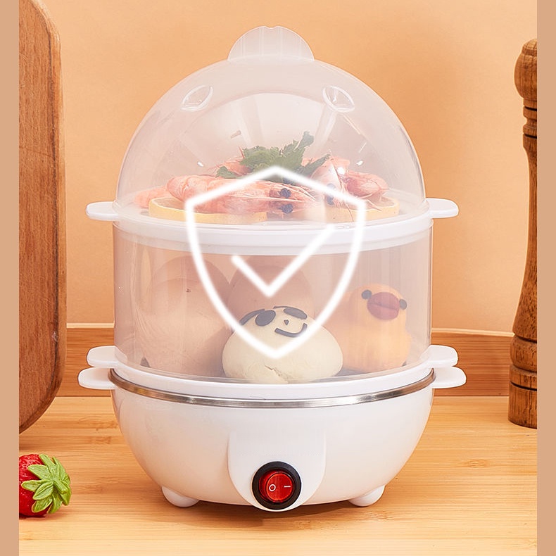 ? Electric Egg Boiler Half Boiled Egg Maker Double-Layer Mini Cooker Breakfast Steamer 2-Pin Plug Auto Power-off 煮蛋器