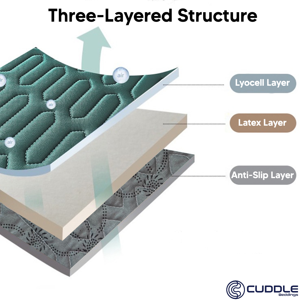 Cuddle™ Silky Cooling Mattress Protector /Cool Lyocell Fabric /Latex Layer/ Anti Bacteria/ Anti Dust Mite