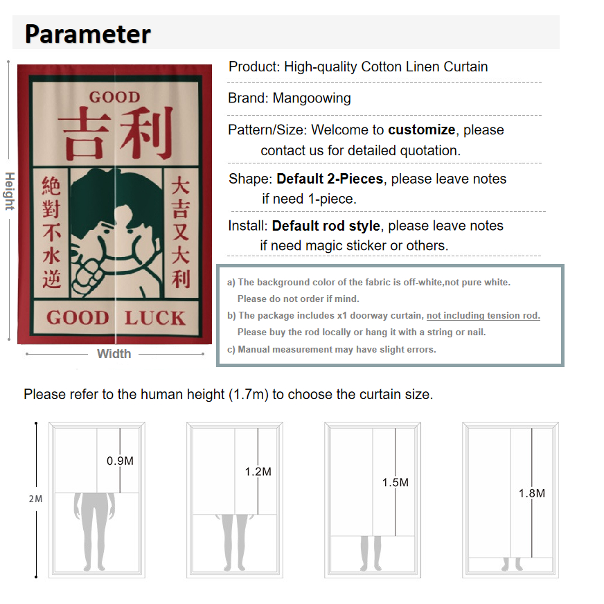 Customize Door Curtain for Kitchen Store Opening Decoration Cotton Thicken Long Doorway Partition Curtain Velcro Tape Rail Curtain with Rod