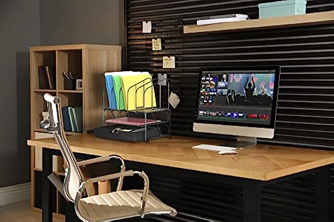 DecoBros Mesh Desk Organizer with Double Tray, 5 Upright Sections and Sliding Drawer, Black