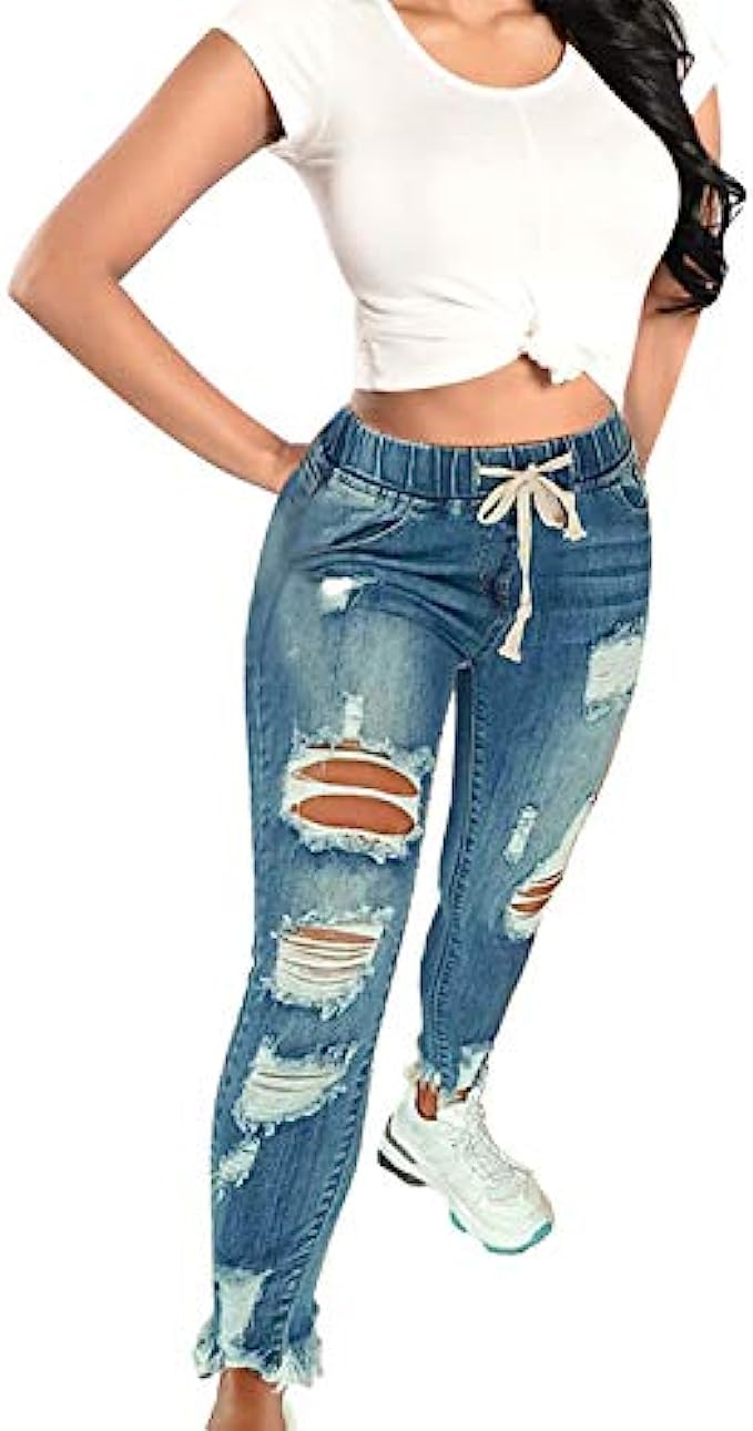 • Features: high waisted,denim destroyed,skinny leg,zipper closure,long pants,button down classic denim,ripped detail,slim fit.