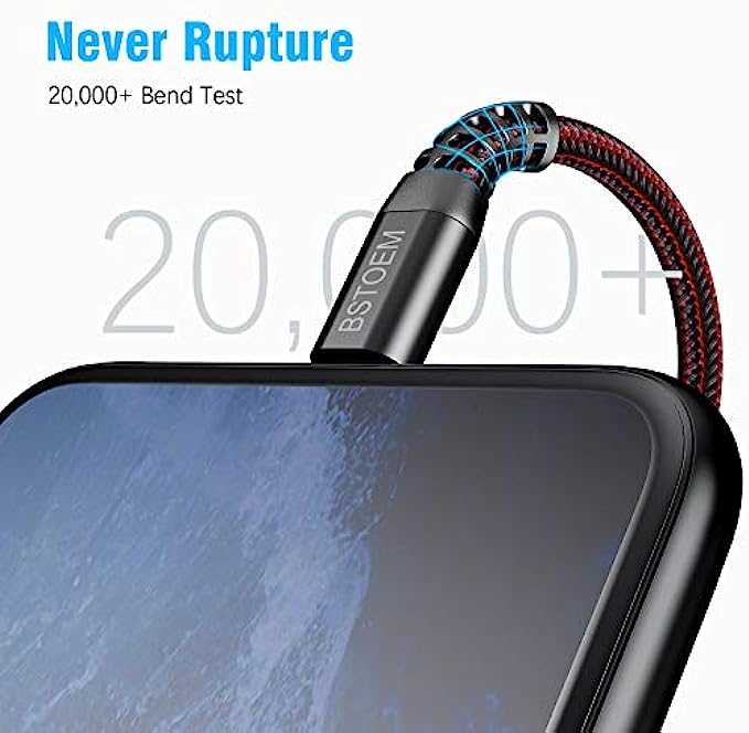 【Super durable】:BSTOEM iPhone charging cable is more durable. Reinforced and lengthened cable joints passed 10,000+ bend test. Laser welding technology is adopted at the connection between the connector and the cable to make the connection more firm and will not break easily.