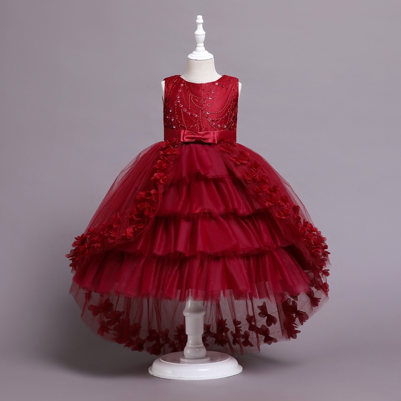 MQATZ Summer Trailing Kids Party Dress For Girl Children Lace Princess Dresses Girls Clothes Little Bridesmaid Wedding Ball Gown T5399