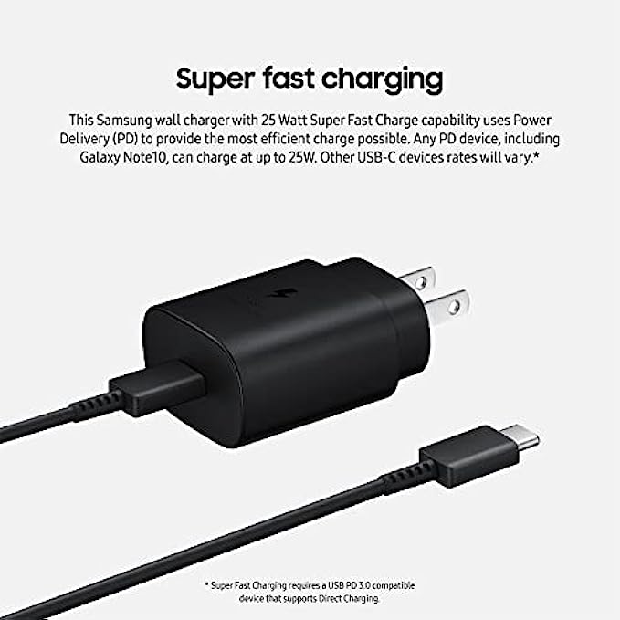 Flexibility - a detachable USB-C to USB-C cable is included in the box, so you can charge your phone from any other USB-C power source such as your computer or a portable battery. Use the cable to sync and transfer files at blazing speeds with your Galaxy or any other compatible smartphone or laptop.