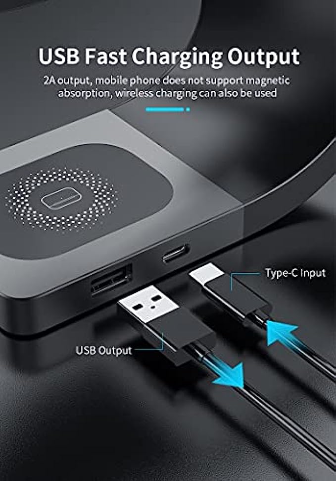• 【Neat Desktop&Protection Equipment】 Wireless charging station only needs a cable to charge.It keeps your desk tidy and clean,which reflected the sense of high-tech.Wireless charging stand reduced the friction of USB or Lightning ports. Phone charging station is covered with a soft material,which can protect your device from accidental scratches.Phone and watch charging station base adopts non-slip mat design,prevents the devices from easily sliding off.
