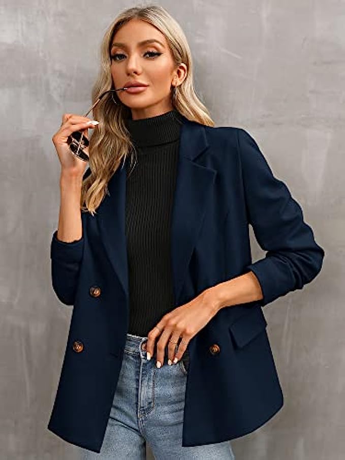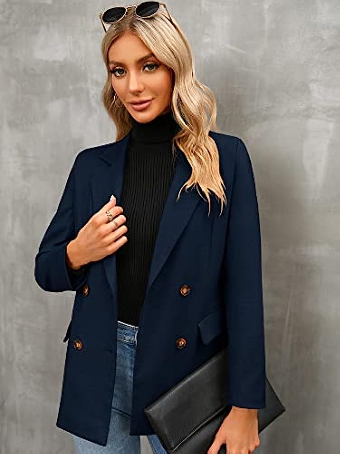 • 【Feature】The boyfriend blazer features: long sleeve, open front, oversized and boyfriend style, front button, double breasted, two side pockets, notch lapel collar, fully lined, with shoulder pads, solid color, womens business suits