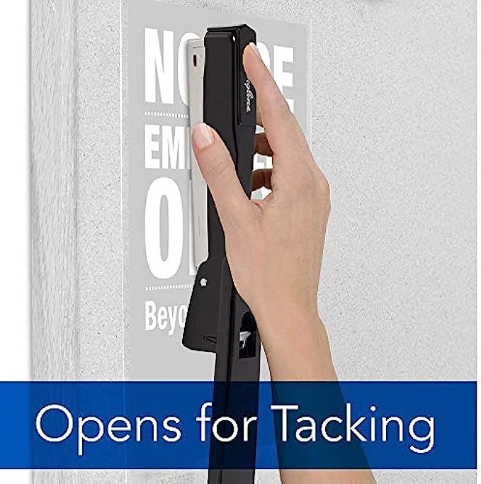 TACKING & PINNING – Tack papers to bulletin boards with ease: unlatch the stapler and you're ready. The stapler can also produce pointed staples for temporary pinning: just reverse the anvil.