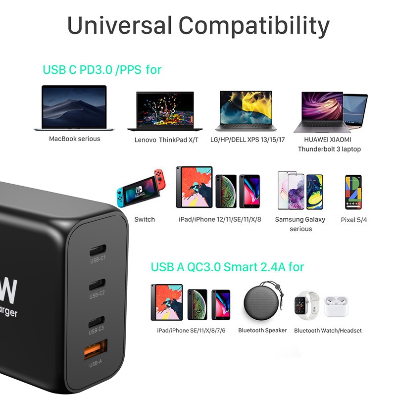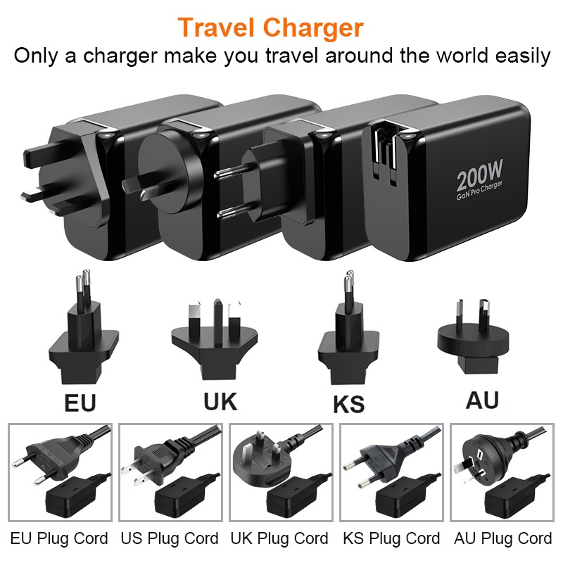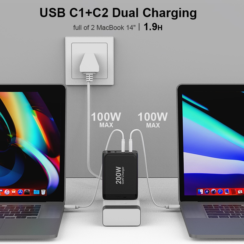 Ugoodbuy 200W USB C Wall Charger 4-Port PD 100W 65W PD 3.0 PPS GaN II Type C Charging Station Power Adapter for MacBook iPhone Samsung