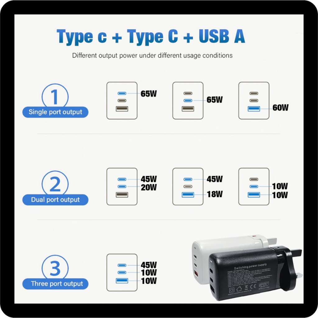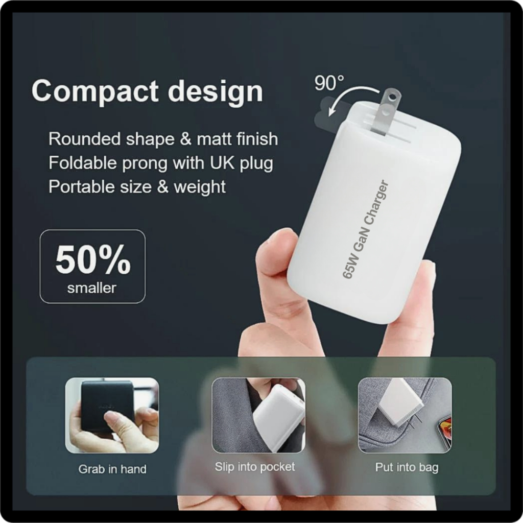 Vizsla SG 65W GaN USB Travel Charger 3-Ports FAST CHARGE 2TYPE-C 1USB-A SMART CHIP
