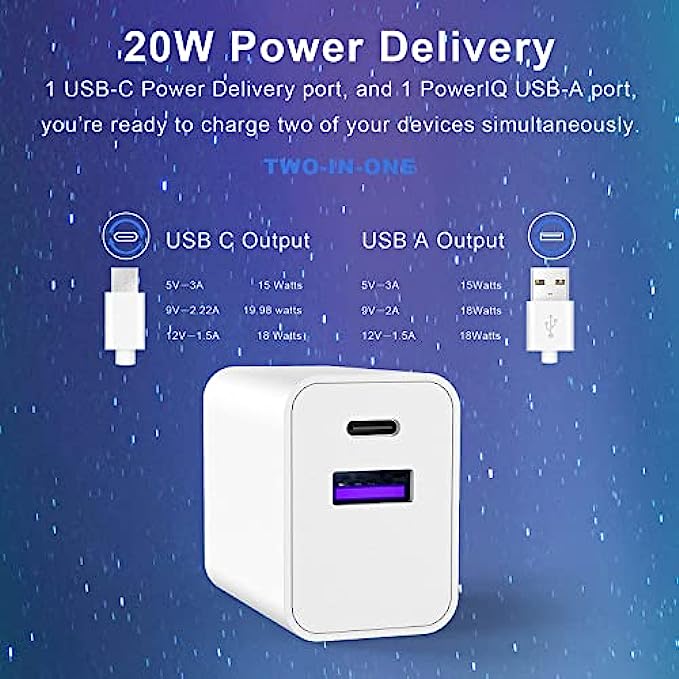 【100% Safe & Compact 】Compatible for iPhone Charger Blocks usually get hot when charging your device at high speed, iPhone SE3 Fast Charging Case with Purple Charging Port gets hot when the temperature rises, Seedato USB C wall charger iPhone Charger brick chip will protect your device from excessive current, don't worry about anything. You can easily take this Seedato iPhone USB C wall charger stand compatible with Apple Watch Charger Series 7 anywhere 【Compatible for PD 3.0 iPhone Charger Block】Seedato USB C wall charger compatible for iPhone Charger Block & USB C wall charger interface supports a power output of 20W. This iPhone 13 pro max fast charger technology of Seedato USB C wall charger can charge your iPhone series at lightning speed.Quick Charge 3.0 technology rapidly charge most device at its fastest possible speed, up to 3A.Seedato iPhone charger needs to be used with the original charging line to achieve the fastest charging speed 【Dual Port Fast Charging】This Seedato USBC block compatible iPhone SE3 charger stand with purple charging port, designed for 2-in-1: Dual port design of USB-C and USB-A Charges at highest speed simultaneously as compatible iPhone Watch charger and iWatch 7 charger. Save charging time, save space, and carry around with Seedato Iphone 14 charger block IPhone charging stand with a purple charging port 【Universal Compatibility】Seedato USB C block compatible for Seedato iPhone Charger Block equipped with a USB-C and USB-A Power Delivery ports can work with type c and USB cable. Seedato USB C wall charger compatible with Apple Watch Charger Series 7 / iPhoneSE3 13 /13 Mini /13 Pro /13 Pro Max /12 /12 Mini /12 Pro /12 Pro Max /iPhone 11 /11 Pro /11 Pro Max /iPhone XR /X /XS /XS Max /iPhone 8 Plus/iWatch 7/6/5/4; Samsung Galaxy S10 /S10e /S9 /S8 /Note 9 /Note 8 and all phones or tablets 【What You Get】LIFETIME-WARRANTY. This Seedato USB C block compatible for iPhone Charger Block /Apple Watch Charger Series 7 interface Dual Port (USB-A and USB-C) Seedato Upgraded iPhone Charging Block/ iphone 14 pro max charger block, Durable USB C wall charger PD Fast Charger cube, Many Months Warranty is included with its purchase as well, 7*24-hours Friendly Customer Service. If you have any questions about this iPhone 13 pro max fast charger, please contact us