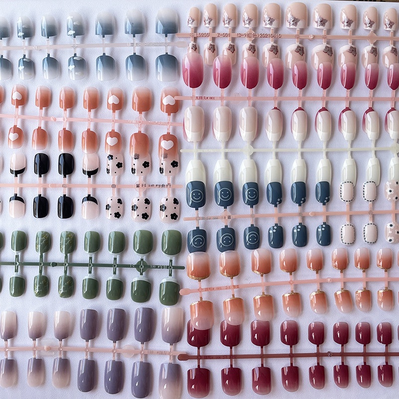 with 24 Pcs Sticker Glue 24Pcs Press On Nails Nail Art Patch Fake Nails Flase Nails Waterproof Detachable Nail Patch